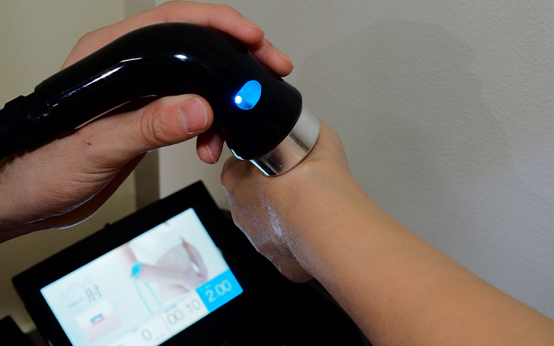 1秒間に100万回以上の振動を患部に照射することで温熱作用を発生させ、固まった組織の軟化・循環の改善・再生を促進します。腱鞘炎や関節の拘縮など腱組織の治療に効果的です。当院では患部に適したプローブを使用して適切な方向と出力を照射することで症状の改善をおこないます。