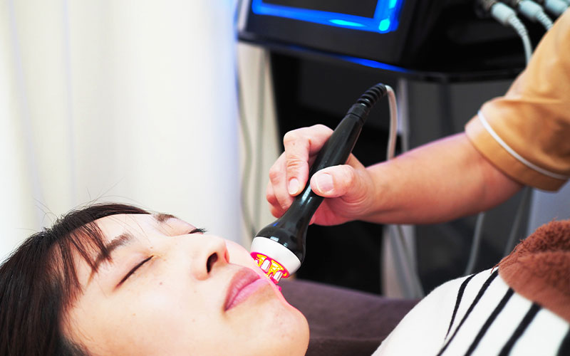 当院では専用のスティックを使用して治療用電気機器である立体動態波を表情筋に浸透させ、リフトアップをおこないます。また、施術前にはお顔全体にラジオ波を照射し表情筋全体にジュール熱を発生させトレーニング効果を高ます。最後に3D MEN,S(微弱電流)を併せて行うことで肌のターンオーバーを整えトレーニング効果を持続させます。お顔全体のリフトアップの他にも、血流促進によるクマ予防効果もあります。侵害性が低く安全に受けていただけるため、日頃からのお顔のケアや大切な日の前日に受けていただけます。